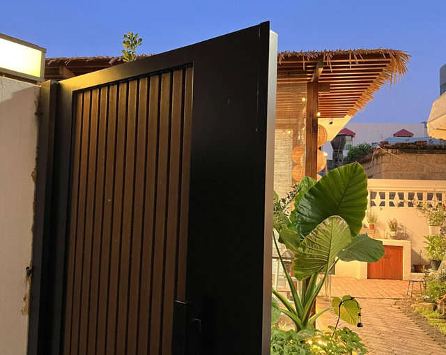 院子的每一寸土地都充满了自然的气息。地面铺满了红砖,与周围的草坪、砾石巧妙融合,每一步踏上去,都仿佛能感受到乡间小路的质朴与宁静。